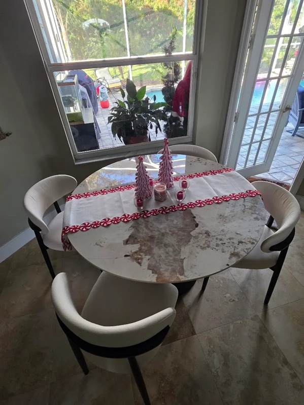 Overall I’m happy with the set. The table feels solid and the base is stable, no wobbling. The surface is easy to wipe which helps a lot. Only reason for four stars is that I had to spend some time adjusting the chair legs to sit properly.